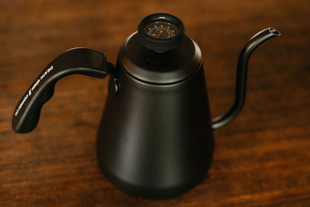 There’s nothing better than a cup of strong coffee from a Chemex. And we’re here to up your pour over coffee game. Our first-ever custom-branded kettle, available now in limited quantities, includes our logo on the thermometer, the bottom, and the handle — and the matte black finish on the entire kettle is as black and dark as your morning cup of coffee.